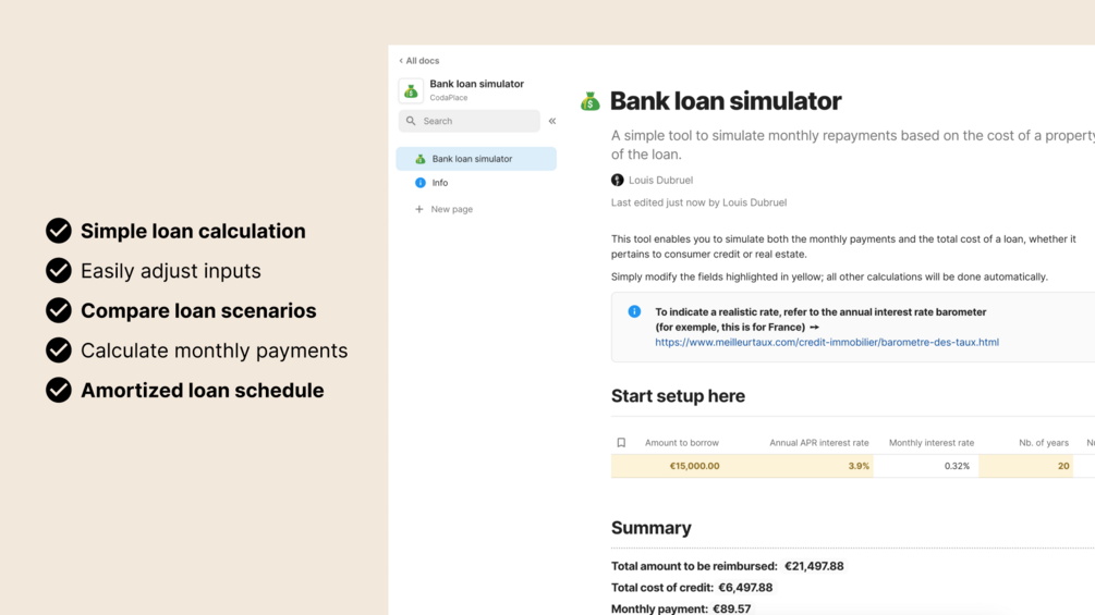 Coda Template - Financial Tool